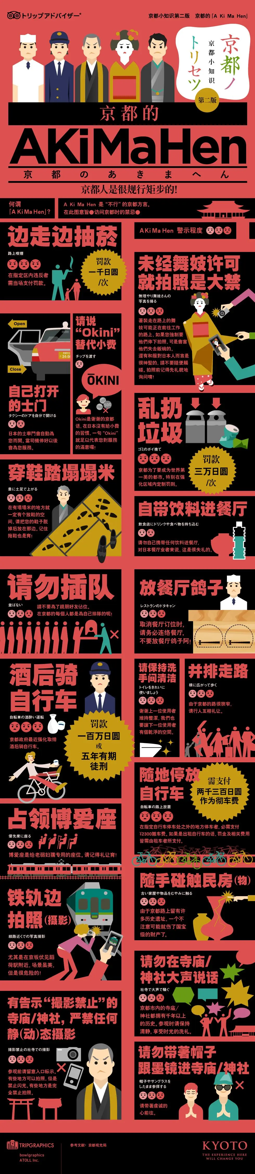 另外,我比较熟悉的京都市,也在这两年颁发了一份小小的中英对照的游客须知,叫做《あきまへん》——あきまへん是京都的方言,意思就是不行、不要、不能。