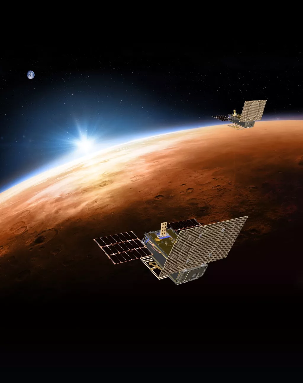 MarCO提供通信中继,以便洞察号着陆火星后,快速告知地球。 Credits: NASA/JPL-Caltech