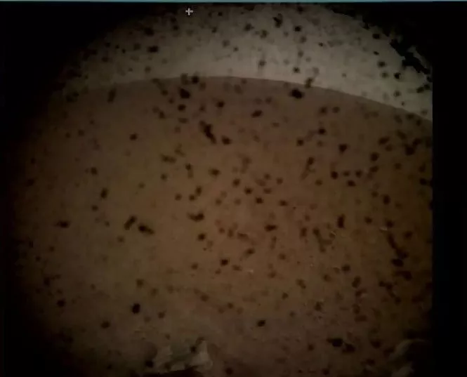下面是洞察号传回的第一张火星表面图,位于埃律西昂平原(Elysium Planitia),由于不能移动,洞察号将在这里开展工作。