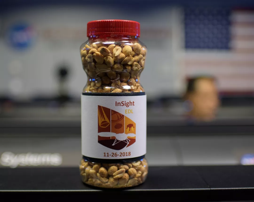 洞察号牌好运花生 来源:NASA/Bill Ingalls