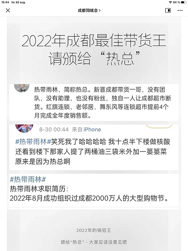 答:成都销冠热总,新晋带货一哥,拉动内需第一人,比李佳琪还牛皮的“带菜人”!