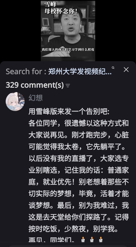 这二位死于对金钱的极度渴求之中,极度的渴求就等于把身体拉到极限,断,那是很大概率的,卖衣服哪位,想的是要趁着红,把每一个粉丝的热度化成带货的成交额,另一位更绝,命都可以当作热搜的流量,所以说实话我不太同情这二位,中国人呐,就是把钱看得太重,从小就听大人说,不知不觉就学会用钱衡量一切,不知不觉成为钱的奴隶,这个价值观没有改变,同样的悲剧会不断上演,这可不是80后的宿命,是全中国人的宿命