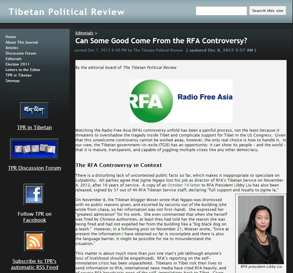 茉莉:解雇晋美事件和流亡西藏的民主进程 ——读《图伯特政治评论》社论有感 解雇晋美事件和流亡西藏的民主进程 ——读《图伯特政治评论》社论有感 (瑞典)茉莉 原自由亚洲电台藏语部主任阿沛·晋美被无理解雇的事件,本来被认为只是美国新闻机构内部的人事问题。我原来撰写的几篇文章,关注的问题只是:自由亚洲电台违约解雇晋美先生理由何在?一个由美国纳税人供养的新闻机构,为什么在解雇人时不遵守合法的程序?该台台长Libby Liu(刘仚)女士不懂藏语文,对西藏问题没有研究,从未有过从事新闻工作的学历和履历,也没有聘请专家鉴定,那么,她凭什么判断藏语部广播节目的质量? 前些日子,在读了《图伯特政治评论》的社论<RFA争议能否化害为利>之后,我突然发现,晋美先生被解雇事件已经涉及到流亡西藏的民主进程,并被赋予了更多、更为深广的现实意义。 ◎ 为什么不幸事件可成为一个机遇? 解雇晋美事件之所以牵涉到西藏流亡社会,引发争议,是由美国国会议员德纳·罗拉巴切的一封信引起的。 多年来坚定支持西藏的美国外交事务委员会附属调查委员会主席罗拉巴切,出于他的职责,于11月17日和19日,分别写信给自由亚洲电台台长Libby Liu 和西藏流亡政府首相(现更名为藏人行政中央司政)洛桑森格。在给洛桑森格的信中,罗拉巴切就西藏流亡政府领导人试图操纵自由亚洲电台藏语部的新闻报道一事表示愤怒。 针对这一事件,《图伯特政治评论》的社论严肃地宣称:“依照我们的观点,图伯特流亡政府现在面临一个机遇:向它的民众和全世界显示它是一个成熟的和透明的民主政体,并且可以和其他民主政体一样对错综复杂的危机应付裕如。” 为什么这样一件引发争议的不幸事件,会被《图伯特政治评论》视为西藏流亡政府面临的绝佳机遇?如果我们细读这篇社论,就可发现,社论作者的逻辑链条是严密的。 这个因果关系并不复杂:因为社论作者有一个信念,即西藏事业需要一个坚强的流亡政府,所以需要听取各种建设性的意见。而在这次争议中,流亡西藏的领导人所暴露出的某些缺点和不足,有可能通过吸取意见而得以克服,从而自我完善走向成熟。所以,社论作者说这是一个很好的机遇。 在我看来,这有点类似中国汉族知识分子提出的“第二种忠诚”。上个世纪八十年代中期,中国著名报告文学作家刘宾雁写了一篇题为《第二种忠诚》的文章。刘宾雁认为国民对国家的忠诚有两种:第一种忠诚是老实听话、不加思索的忠诚;第二种忠诚是敢于大胆质疑、根据自己的分析判断对国家提出真知灼见。 在中国专制政权下,持“第二种忠诚”立场的知识分子大都遭到迫害,其下场比较悲惨。但西藏事业是民主自由的事业,秉持“第二种忠诚”的藏族建议者,因此对流亡西藏的领导人充满了期待。 ◎ 藏族精英提议成立“透明与监督委员会” 我因此有点好奇,这些对西藏流亡政府持“第二种忠诚”态度的社论作者,是一些什么样的人呢?在网上搜索发现,《图伯特政治评论》(The Tibetan Political Review)的编辑,是一群身在美国的流亡藏人,他们大都有法律、政治学科的背景,有些是专业律师。这个网刊是他们义务创办的,其宗旨是面对西藏民族,在重要的政治问题上,致力于推进建设性的讨论。 这群学有所成的藏族流亡精英,怀抱拳拳之心,以他们的专业学识以及在民主社会生活的经验,对本民族的流亡政府及议会提出了一些睿智而中肯的建议。 首先,他们对西藏流亡政府首相洛桑森格快速回应美国议员罗拉巴切的做法,提出了异议。社论作者认为,洛桑森格的声明“不太可能解决问题”,“没有明确界定他所说的‘RFA人事问题’具体为何所指”,因此会被美国国会议员认为“不是一个完全坦诚的人”。 其次,社论作者对西藏流亡议会议长边巴次仁代表议会给罗拉巴切的一封信,也进行了分析批评。作者认为,议长最大的问题是不去询问罗拉巴切指控的证据,也不经过自己的独立调查,就向议员甚至美国总统发信“激化事态”。他们说: “这封信在没有任何明显依据的前提下,断言罗拉巴切的指控‘明显是含沙射影和道听途说’。罗拉巴切的委员会有渠道获得不公开信息,并且处理美国外交事务中最敏感的问题(诸如军事威胁、间谍活动和恐怖主义)。议长先生既不可能知道罗拉巴切提出指控的依据(因为他未曾就此提问),也没有足够的时间进行自己可靠的独立调查。” 在客观公正、有理有据地批评了议长的做法之后,《图伯特政治评论》的作者指出,流亡议会应该独立于政府,应该分权制衡,这是达赖喇嘛尊者期望于一个民主政体的。 那么,流亡议会应该如何监督和制衡流亡政府呢?社论作者以这次争议为例,设身处地,构想了流亡议会答复罗拉巴切的种种正确表述,这些正确表述中最重要的是:西藏流亡议会应承诺美国议员:“可以将此事委托于一个独立调查委员会”。 社论作者设想的“透明与监督委员会”(Transparency and Oversight Committee),其职责是“专门负责在任何时候当图伯特流亡政府的运作面临信任度问题时进行调查”。如果有这样一个机构存在,将会“有助于改善图伯特流亡政府的职能,使之成为一个具备透明度和分权原则的强健的民主政体”。 ◎ 西藏的传统权威被法理权威所取代 尽管《图伯特政治评论》社论的作者满腔热忱地表达了他们的看法,提出了具体