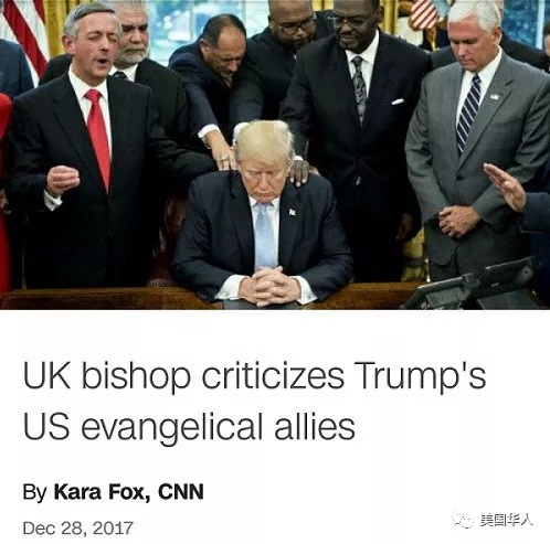 白宫经常做集体祷告。但英国主教保罗(Paul Bayes)指责美国福音派与白宫“勾结”,支持一个搞分裂不宽容的制度:使穷人边缘化、筑墙而不是架桥、排斥社会边缘人……。(Credit to CNN)
