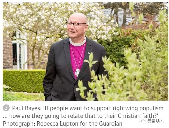英国主教保罗(Paul Bayes)说:“如果人们要支持极端右翼的民粹主义,......他们怎样才能把这个与他们的基督信仰相关联?”(Credit to Guardian)