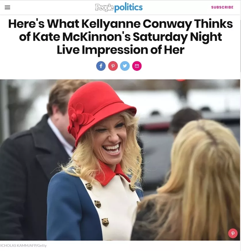 康维操纵舆论的技巧之高,甚至达到X光医疗专家的水平。例如,当影星梅丽尔·斯特里普批评川普嘲弄残疾记者时,康维建议说,人们在评判川普时应忽视其言论,而去重视其内心。她似乎用X光透视过总统的心脏,发现那里完全没有恶毒,只溢满了美好的善意。
