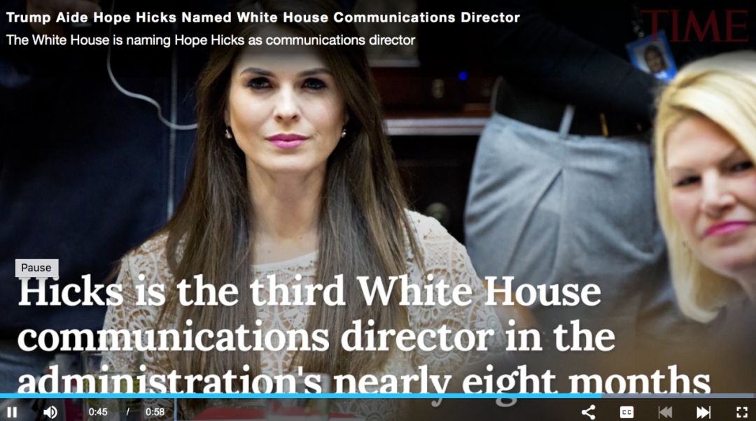人们曾津津乐道说,川普总统对希克斯关爱有加,因这位小姐有讨人喜欢的好脾气,被称为“最懂川普的女人”。据说,希克斯很善于学习,有很强的公关能力与适应能力,深受川普信赖,因此在短短几年内实现政坛“三级跳”,从新闻秘书跃升到白宫通讯总监的位置。