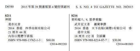 葛亦民的神经已登录港府憲報《香港印刷書刊目錄》 发件人:bro <bro@lcsd.gov.hk> 收件人:葛亦民 <50914333@qq.com> ( 39 ) in LCSD S LIB BRO / 1-70 / 1 IX 先生/女士︰ 謝謝您2月10日查詢有關書刊註冊的電子郵件。 市民如欲查詢於香港出版、印刷或製作的書刊註冊紀錄,可瀏覽刊登於香港特別行政區政府憲報第4號特別副刊內的《香港印刷書刊目錄》。該目錄的印刷版存放於香港中央圖書館的參考部,供市民在館內閱覽。而該目錄的電子版可到「政府物流服務署」網頁內的「第4號副刊公告」查閱:https://www.gld.gov.hk/egazette/tc_chi/search_gazette/search_supp4.html 請按以下步驟在目錄的電子版查詢相關資料: 1. 到達目錄的電子版,網址為: https://www.gld.gov.hk/egazette/tc_chi/search_gazette/search_supp4.html i. 選擇年份及卷號,例如:2015第019卷 ii. 輸入標題關鍵字,例如:書刊 iii. 按「搜尋」鍵,到達憲報刊登於該年份的版面 iv. 點擊該期的《香港印刷書刊目錄》連結, 例如尋找"2014年第三季香港印刷書刊目錄",可選擇年份及卷號:2015第019卷 點擊連結到憲報刊登於 2015 年 09 月 25 日 星期五 第 19 卷第 39 期 https://www.gld.gov.hk/egazette/pdf/20151939/cs42015193957.pdf 2. 到達該期的《香港印刷書刊目錄》版面後,同時按下 Ctrl 及 F 鍵 3. 在「尋找」對話方塊空格內,輸入書名、作者或ISBN號等關鍵字,例如:978-988-13762-1-3 或 四季出版有限公司 4. 繼續按「下一個」鍵查詢 根據《書刊註冊條例》(香港法例第142章)的規定,任何新書刊的出版人,須於該書刊在香港出版、印刷、製作或以其他方式製成後1個月內,將5本書刊,免費送交書刊註冊組﹝簡稱「本組」﹞登記。一般而言,出版社註冊書刊時,需要呈交一式兩份的書刊註冊表格,註冊成功後,本組會把註冊表格副本寄回該出版社以作記錄。如有需要,請您直接向出版社查詢。 如有任何查詢,請致電2180 9146與關小姐聯絡。謝謝您對本組服務的關注。 康樂及文化事務署署長 (容桃歡 代行)