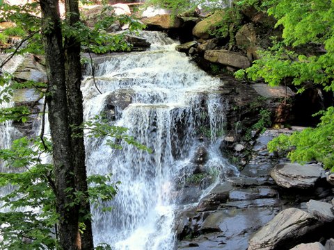 想想看吧, 当19世纪的美国画家笔下的景象突然出现在你面前是该是什么样的心情? 我们期待着。 Catskill山 峰峦叠翠,流水潺潺。 忽听一阵水的轰鸣,由远至近,瞬时间,眼前是扑面而来的瀑布: