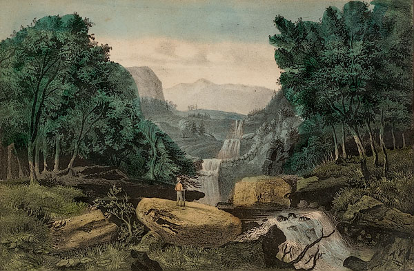 看看画家的瀑布:多么细致的勾画,我喜欢那种色泽,构图, 还有那个小小的人