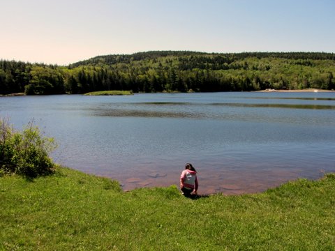 湖面如镜,看看下面有我小女的那张,没风时,湖面干静透彻,一点儿没变。