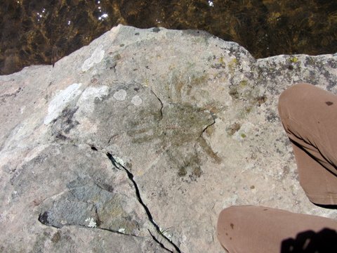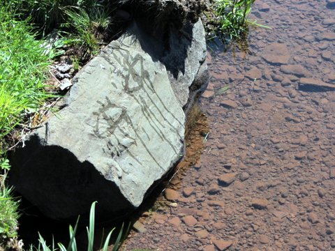 小女也跟着凑热闹,蘸着湖水在湖石上画画, 嗯,有点儿意思: