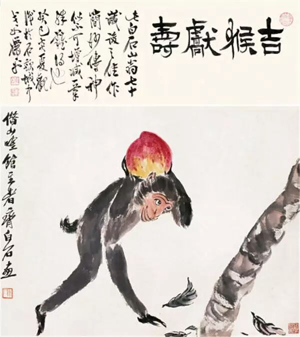 齐白石《白猴寿桃》