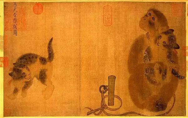 宋 易元吉 缚猴窃果图 猴,聪明伶俐,有趣滑稽,十二生肖之一。中国人早在三千年前就把猴子录进象形文字。《山海经》和《吕氏春秋》上称其为“猿”;《楚词》里尚有“猕猴”记载;古典名著《西遊记》更是让世人熟知了“美猴王”的威力。