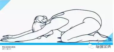 坐位下腰部牵伸 坐位膝关节分开,身体前弯,保持对下腰部舒适的牵伸
