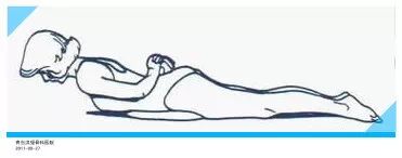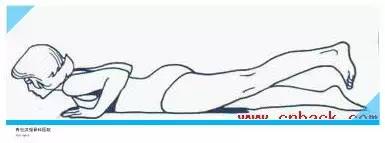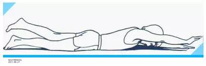 腰椎间盘突出症保健操图解(上) 腰椎训练动作 起身运动 上半身如图试位置,保持髋关节紧贴地面,同时保持下腰部及臀部放松