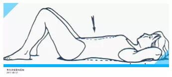 仰卧起坐 将足置于高位,手臂放于颈后或胸前,整个骨盆放平,抬高头部和肩关节