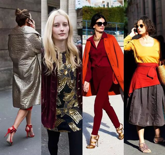 Monochrome全身统一色系, 气场特强大。 金,橙,黄,裸,褐,棕都可, 加层次,多而不乱。 也别把这全整上,两三个就可。