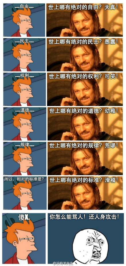 微信裸鸡是一只特殊饲养棚里培育出的思维方式,单向的,屏蔽逆向思维,灌输式的,属于典型的“我教你学” 的强迫思维。这就是为何微信里的段子没有人会认真对待,最多就是个游戏级别。