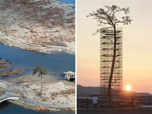 这棵树是在日本海啸时,7万棵树中唯一幸存的一株。现在它不但受到保护,也恢复了蓬勃的生气。