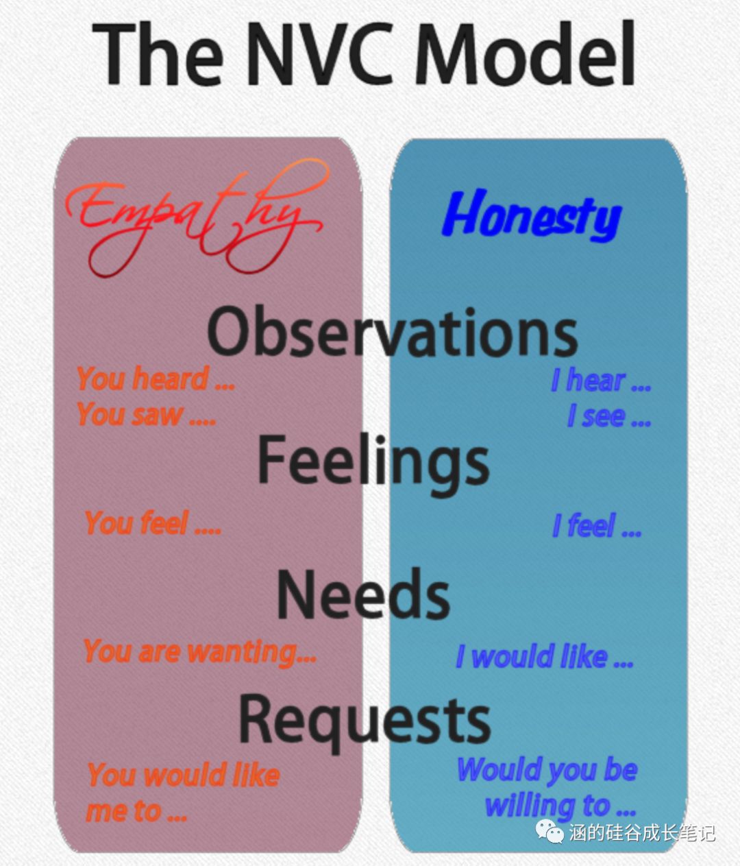“非暴力沟通”:Nonviolent Communication, NVC。