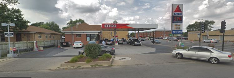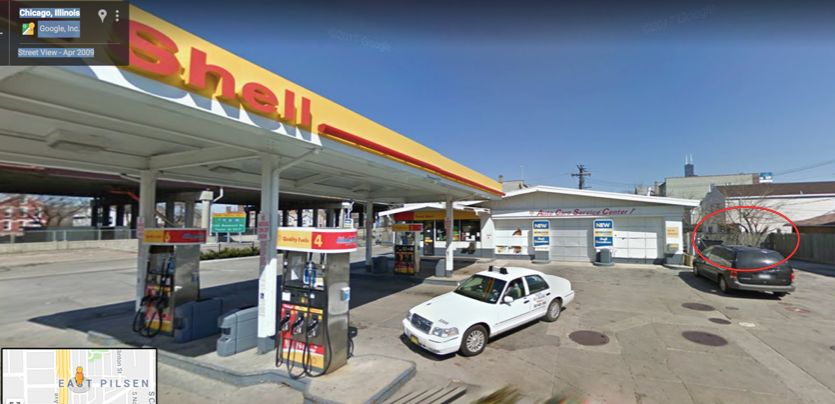 于是史教授和小王又开始重复早上那套简单但行之有效的greedy search方案。很快,他们就在位于2801 W 87th St的Citgo加油站里看到了被劫车辆。车子就停在图中左边那辆白色汽车左边的位置,打着双闪,无法看清车内是否有人。