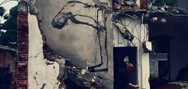 今天有人告诉我说:你在某处建筑废墟 的涂鸦已经成为乌有了。我说:不久我们 都将成为废墟了……