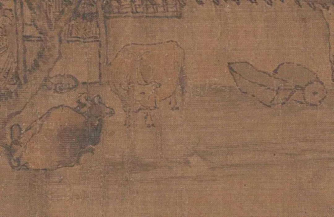 酒肆前方是一處貨物集散地,老闆正催促勞工搬運貨物,所有人都沒有注意遠處奔襲而來的野馬。