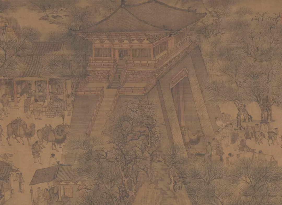 長卷末端,馬背上的人在鬧市區認出了一位朋友,但這位友人卻掩面而過,故意躲避,並不想打招呼。顯然,社交恐懼症在古代已存在,當時的這種處理方式叫“便面”。