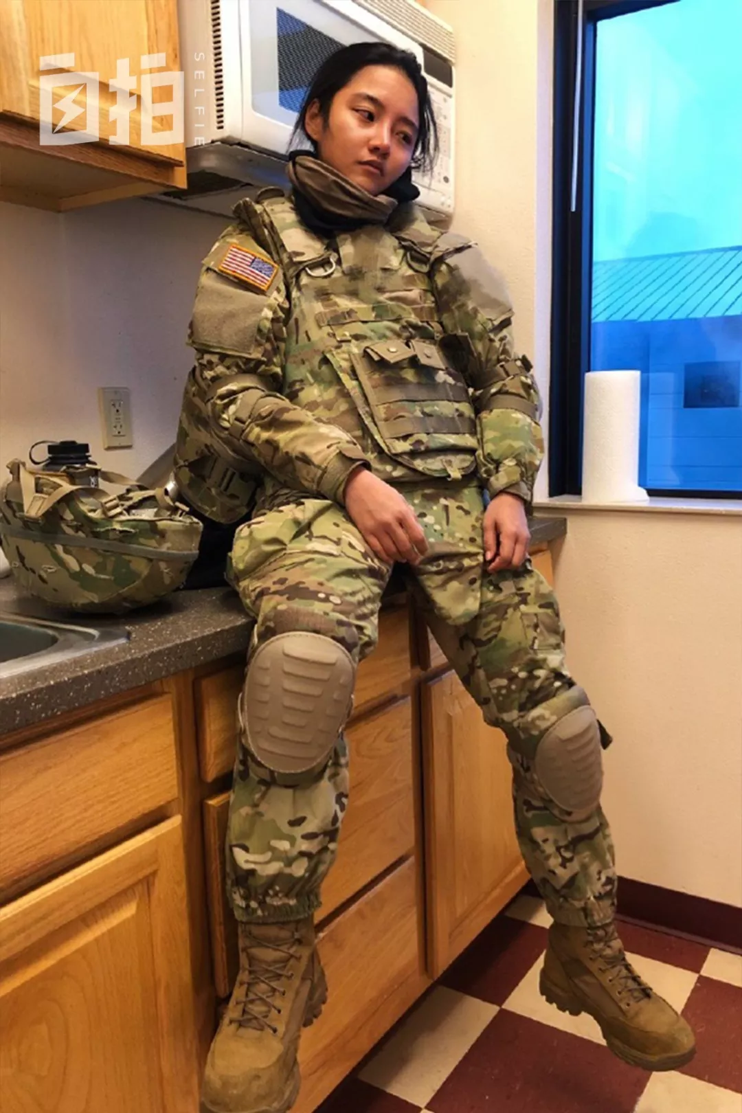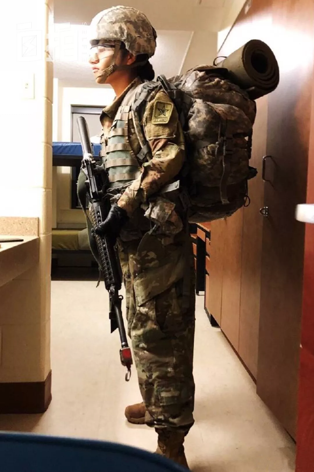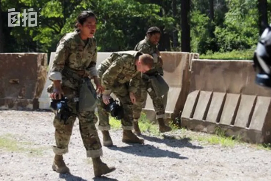 进入基础训练营以后,我的生活就都被训练填满了,早上五点半集合,到晚上七八点才结束训练。学习的内容涵盖了体能、格斗、射击、怎样应对毒气、绳索速降、以及战地急救等等各类科目。 很多人可能觉得这对女孩子来说是难以想象的,因为美军是男女一起训练的,并且这些体能训练动辄就是10英里(约等于16公里)的武装越野行军。不过对我这个常年健身打泰拳,有事没事户外跑的人来说,这些并没有太大难度;真正难的是和身边几十个大多是十八岁高中生的队友朝夕相处。 这是我在进行应对毒气的考核,需要利用防化装备在化学毒雾中停留2分钟,然后再在没有任何防护的情况下在化学毒雾中停留1分钟。