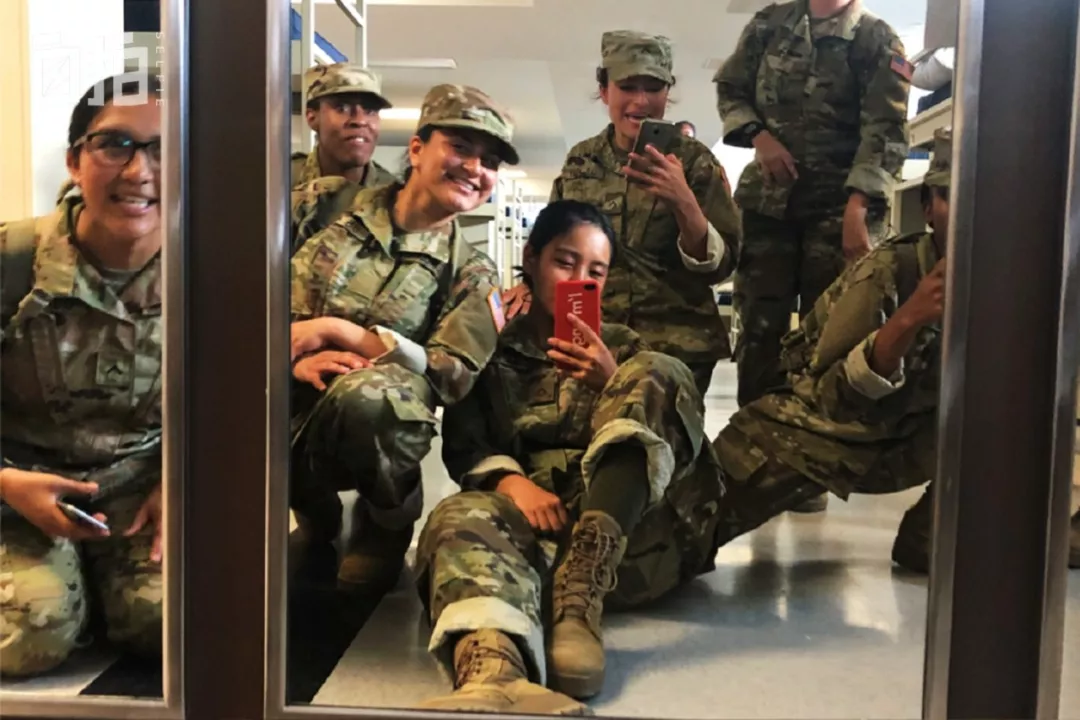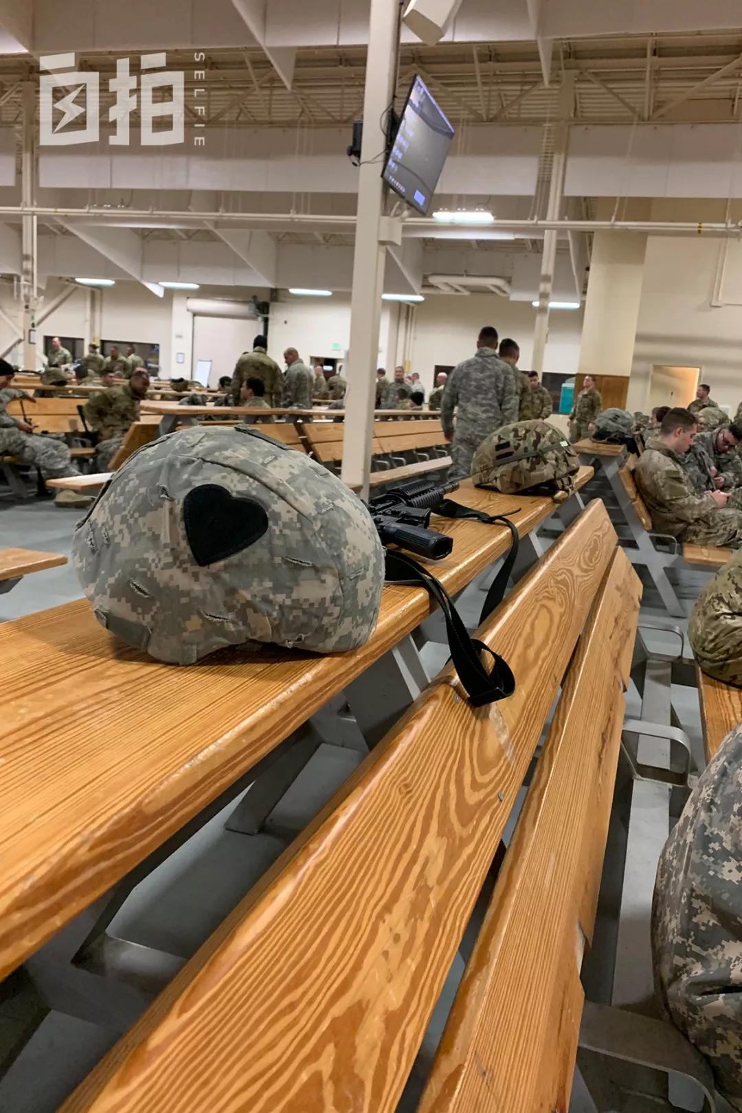 报名后,我先是通过了文化考试和体检,随后就开始了新兵训练生活。美军新兵训练分为两个部分,前半部分是9周的基础训练,后半部分是技能学校,学习特定兵种技能。 这是训练开始前的两天,我在“接收处”接受各种检查,整整两天几乎没能睡成觉。我在宿舍对着镜子自拍时,同学们纷纷围了过来。