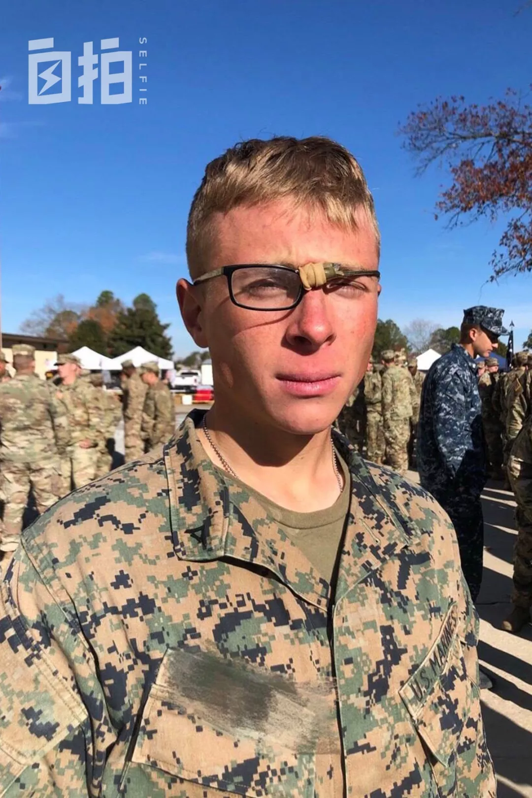 视力也是一个麻烦的问题。我近视不是特别严重,只有一百多度。所以跳伞的时候不让戴隐形眼镜,我裸眼也可以跳。可是度数高的人就比较凄惨了,几周训练下来,大概有五六个人摔碎了眼镜,比如这个海军陆战队的小哥。