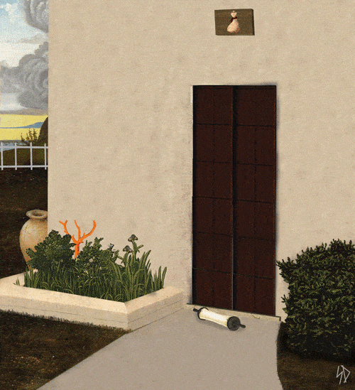 名画恶搞自然少不了gif 3、Scorpion Dagger 这位艺术家擅长将文艺复兴时期的古典油画制作成gif。在他的脑洞里,意淫、宗教讽刺当代流行元素等等严肃的画面都会被演绎成黑色幽默。 效率,效率懂吗? ▽