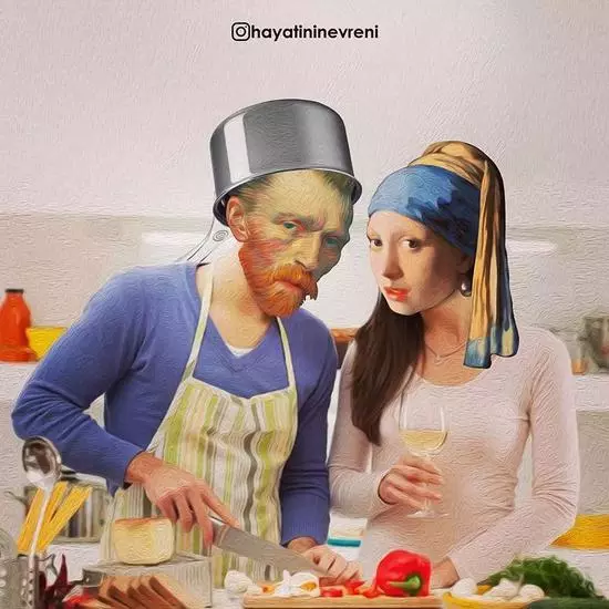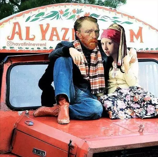 1、Hayati Evren 這位設計師是一名優秀的“名畫通俗化傳播大使”。他選取大眾熟悉的經典名畫並將他們放在當今的世界中,非常地跳躍又好笑。 在21世紀,梵高和戴珍珠耳環的少女戀愛了 ▽