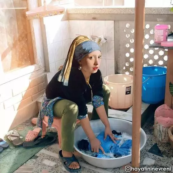 戴珍珠耳環的少女做起了家庭主婦為梵高洗衣 ▽