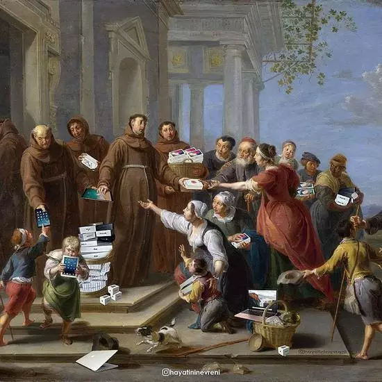 名畫惡搞自然少不了gif 3、Scorpion Dagger 這位藝術家擅長將文藝復興時期的古典油畫製作成gif。在他的腦洞裡,意淫、宗教諷刺當代流行元素等等嚴肅的畫面都會被演繹成黑色幽默。 效率,效率懂嗎? ▽