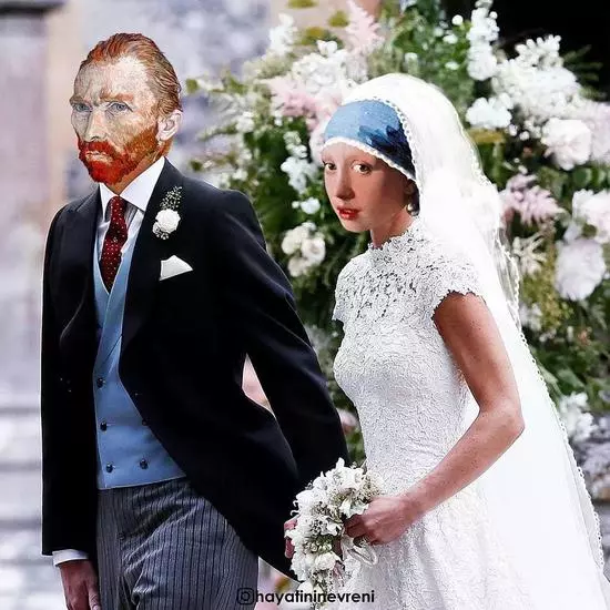 結婚那天手捧鮮花邀請了蒙娜麗莎和戴珍珠耳環的少女做自己的伴娘 ▽
