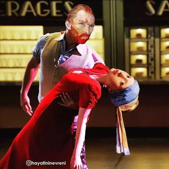 1、Hayati Evren 这位设计师是一名优秀的“名画通俗化传播大使”。他选取大众熟悉的经典名画并将他们放在当今的世界中,非常地跳跃又好笑。 在21世纪,梵高和戴珍珠耳环的少女恋爱了 ▽