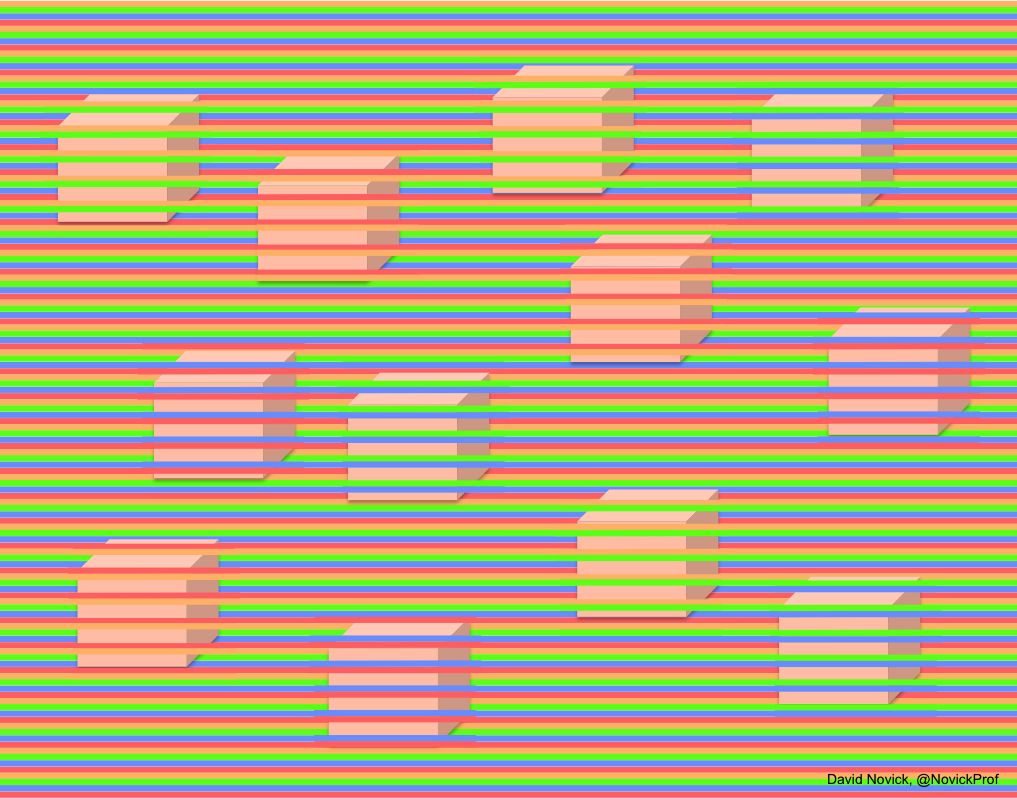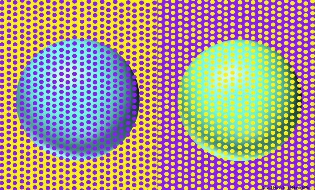 首先,这张图是真的视错觉。图的作者是德克萨斯大学埃尔帕索分校的大卫·诺维克(David G. Novick)教授,他的研究方向是计算机科学,业余爱好之一是制作视错觉图片。