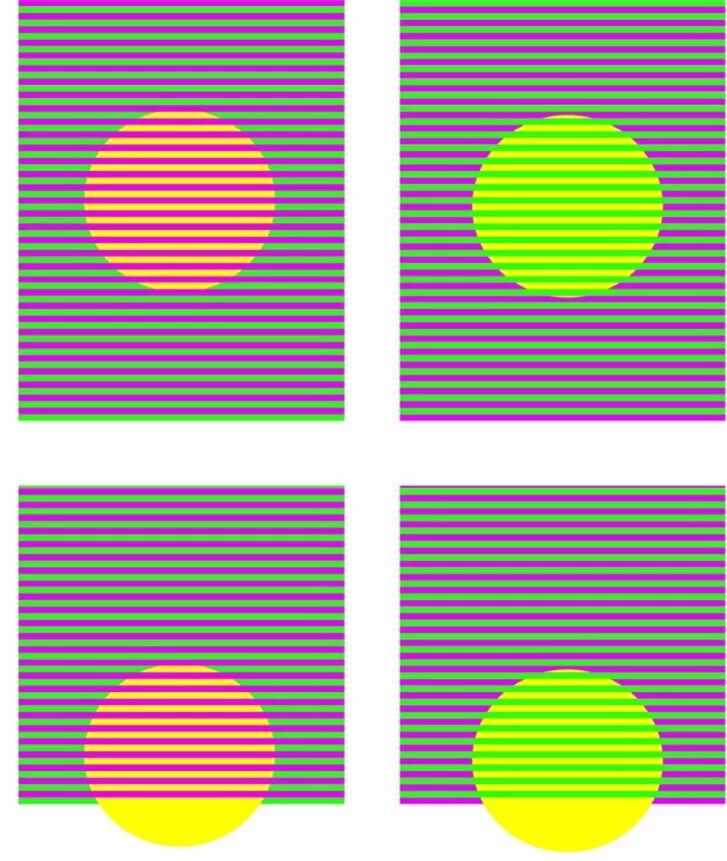上世纪80年代,心理学家怀特(Michael White)发现黑白条纹能影响人眼对颜色的感知。另一个心理学家蒙克(Hans Munker)则发现不同的彩条也能影响人眼对颜色的感知。