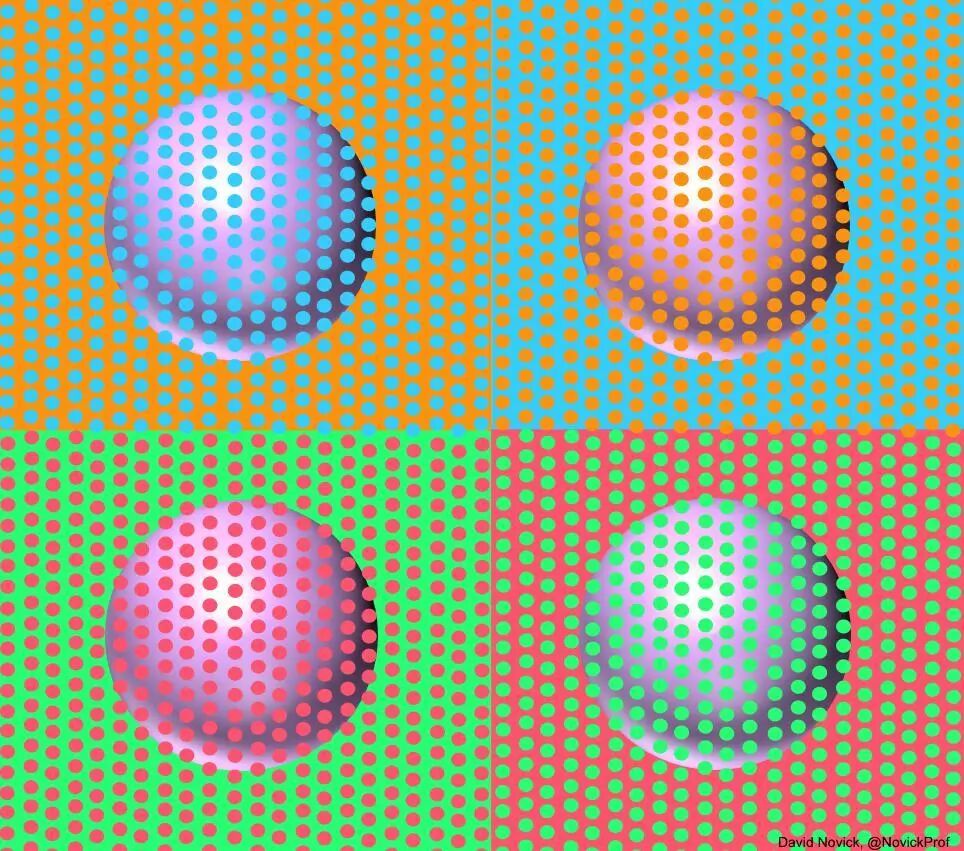 这种视错觉其实并不少见。许多艺术品都会利用这种“大脑混色法”。