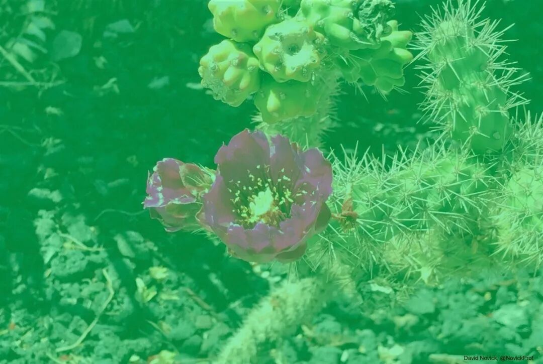 下图里的深红色仙人掌花,其实是灰色的(RGB 122,138,125)。