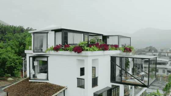 金杜觉得,既然要保留罗马柱,不如干脆将原本的框架向外延伸一点,设计一个悬挑在稻田里的玻璃屋,做一个“玻璃盒子”。 400万改造毛坯房, 是民宿也是家 7个闺蜜,现在都是三十几岁,正是打拼事业的阶段,每年聚齐过来同住的时间并不多。于是大家商量,房子可以暂时作为民宿对外开放,这样也能攒一些养老基金。 房子一共是三层半,面积有700多平米,设计改造花了将近400万。