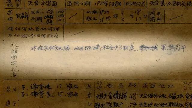 六年前,徐星在北京宋庄无意间发现了一张人像草稿,草稿背面竟然是一张文革时期的“犯人登记表”。徐星一点点翻找,一共找到22张,“犯人信息”都是“文革”期间的“现行反革命”,涉案者大部分是农民,被下放到浙江衢州十里丰农场劳动改造。这些登记表让徐星大受震动,他决定要去浙江寻访这些“文革中的人犯”,做一部他们的《罪行摘要》。