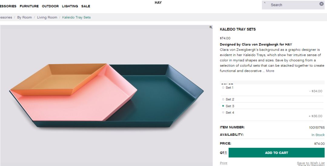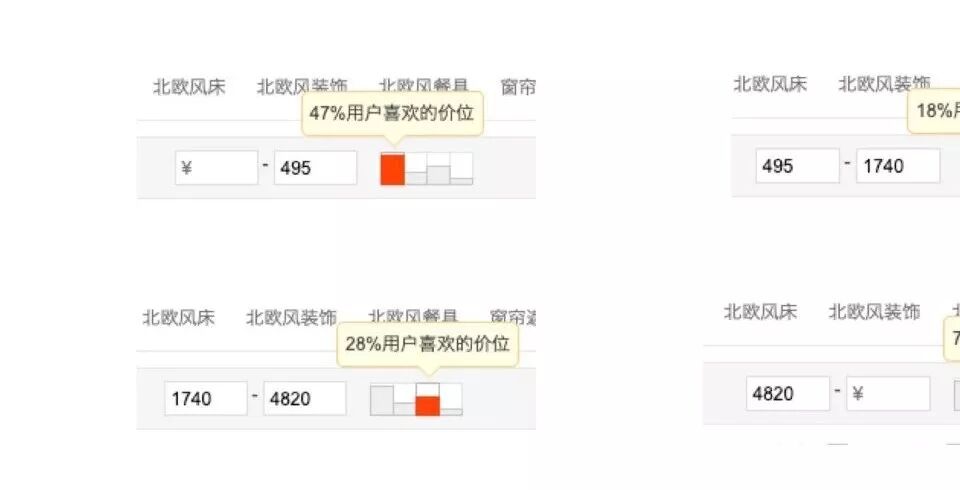 这是一张来自设计便利店的调研图片,在收集了大量北欧产品进行特征提取后,发现斯堪的纳维亚家具强调简约的几何轮廓,线条和天然材料。就拿丹麦平价设计品牌HAY来说吧,这个极具设计感的万花筒托盘原价大概74美元,折合下来400元人民币左右。而在某宝上一搜,销量排名前十的产品,全是十多元的山寨品,差价竟然有20倍,并且配色和CMF处理也差强人意! 根据某宝上的数据显示,大多用户会集中购买500元以内的相关商品。这也说明有很大一部分的用户将北欧风和低价画上了约等号。
