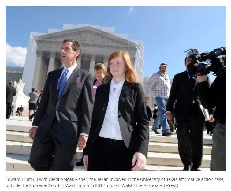 Blum,费舍尔告得克萨斯大学就是他发起的。他本人不是律师。早在1990年代初,以共和党身份跟一位非裔民主党人竞选议员,失败后起诉得克萨斯州,在休士顿推翻了有利于少数族裔候选人投票的选区划分。他打过六次官司到最高法院,胜诉四次。2013年发起谢尔比县诉霍尔德一案,推翻了1965年《投票权法案》一项核心条款,让少数族裔来之不易的投票权再受阻碍。从此找原告打官司成了他的职业。