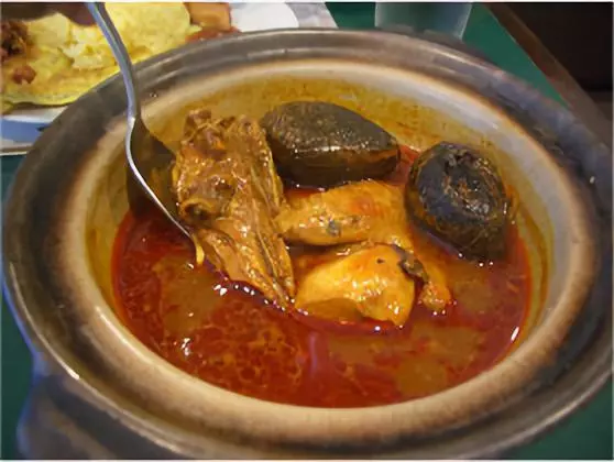 三宝山也是当时的一大华人据点。三宝这个名字是为了纪念三宝太监郑和。这个地方很早就有华人的墓存在了。我们现在到三宝山可以看到什么呢?可以看到明代的墓。当时Albuquerque攻下马六甲的时候,马六甲是有很多中国人居住的。当他把这些来自美洲的植物带到马六甲的时候,马六甲的华人一定也接触到了这些植物。但是最终为什么辣椒作为食物的信息丢掉了呢?华人不知道辣椒能吃这个事情呢?这是个很奇怪的现象。然后我就开始去找史料,但是很不幸,找不到。当时很多中国商人并没有记录的习惯,没有留下很多资料,可能永远不会有人知道辣椒是怎么传进马六甲来的。但是我们现在再去马六甲的菜肴,可以看到什么呢?马六甲的娘惹菜。大家可以看到叁巴虾米(峇拉煎),这是一种虾酱、辣酱的混合菜。