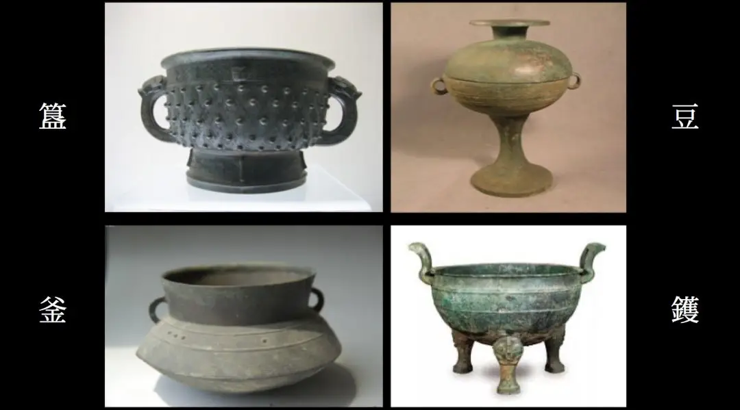 釜是什么呢?秦汉以后,簋用得比较少了,慢慢地改成了釜。蒸的工艺更多地开始用釜和鑊来完成。项羽说“破釜沉舟”,什么意思呢?我把釜都打烂了,我吃饭的家伙都不要了。他没有说“破鑊沉舟”,因为那个是副食,副食是可以增减的,主食是一定要吃的。中国在明清两代面临一个很严重的问题,就是人口不断增加,而粮食产量达到了一个瓶颈。耕地有限,人口又不断地增加,导致严重的内卷化。所以中国在很长一段时间内,包括一直到1949年以后都在喊这个口号——“以粮为纲”。就是主食一定要保证,主食保证不了是会饿死人的,副食就暂时不要了,那些蔬菜、猪、牛、羊这些副食先扔一边,先保证主食,保证主食就能吃饱。