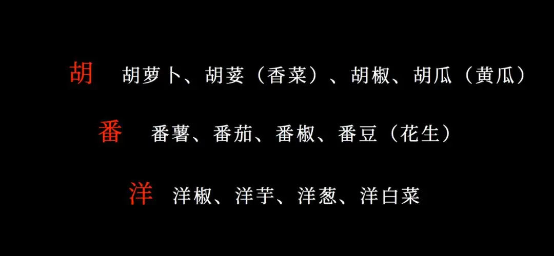 我们有以“胡、番、洋”来命名的规律——秦汉到唐宋之间传进来的基本上叫“胡”,唐宋到明清的时候传进来的基本上叫“番”,清以后传过来的名字里基本上都有个“洋”字。 这个命名规律其实体现了贸易线路的改变。叫“胡”的是走西域的陆路传进来的。叫“番”,叫“洋”的是走海路传进来的。所以说,这里可以看到一个海权逐渐替代路权的过程,其中暗含着贸易轨迹的转变。辣椒传进中国以后,它是怎么传的呢?我把最有可能的几个登陆地点画了出来,就是广东、浙江、台湾这三个登陆地点。