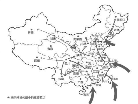 到了清末辣椒是怎样传播的呢?我们看清末辣椒的扩散情况。